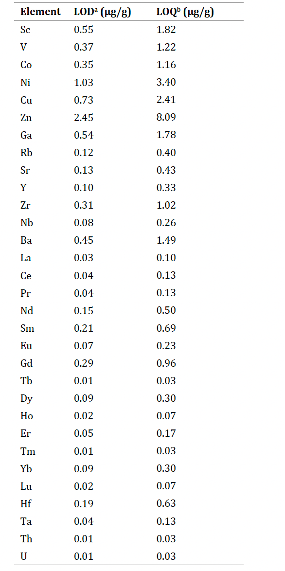 表1 LODs and LOQs for the fsLA-ICP-MS method